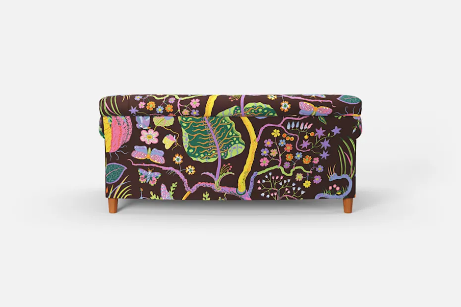 Denna lite mindre soffa är formgiven av Josef Frank i mitten av 1930-talet. Till skillnad från Josef Franks nättare skåp och stolar ger hans soffor uttryck för en bekväm tyngd och soliditet. Komforten skapas med en omsorgsfullt utförd stoppning och dubbla fjädersystem.