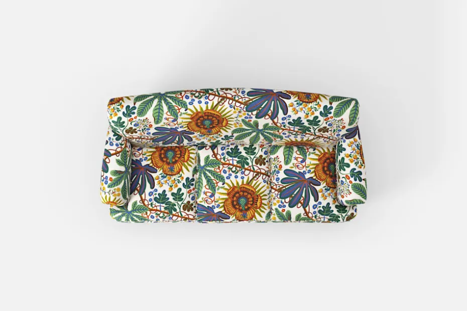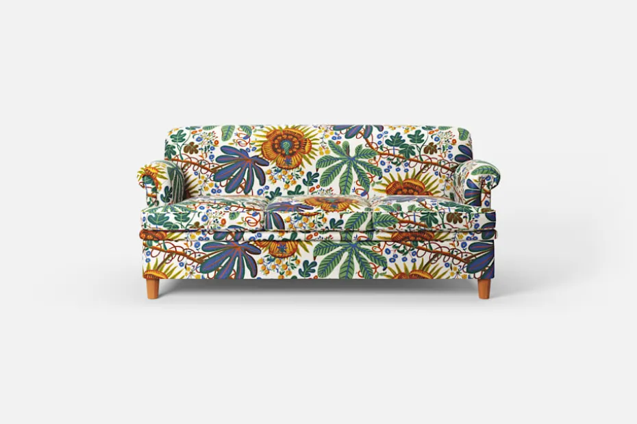 Denna lite mindre soffa är formgiven av Josef Frank i mitten av 1930-talet. Till skillnad från Josef Franks nättare skåp och stolar ger hans soffor uttryck för en bekväm tyngd och soliditet. Komforten skapas med en omsorgsfullt utförd stoppning och dubbla fjädersystem.