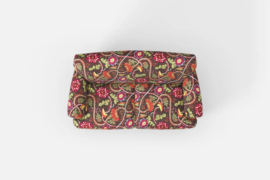 Denna lite mindre soffa är formgiven av Josef Frank i mitten av 1930-talet. Till skillnad från Josef Franks nättare skåp och stolar ger hans soffor uttryck för en bekväm tyngd och soliditet. Komforten skapas med en omsorgsfullt utförd stoppning och dubbla fjädersystem.