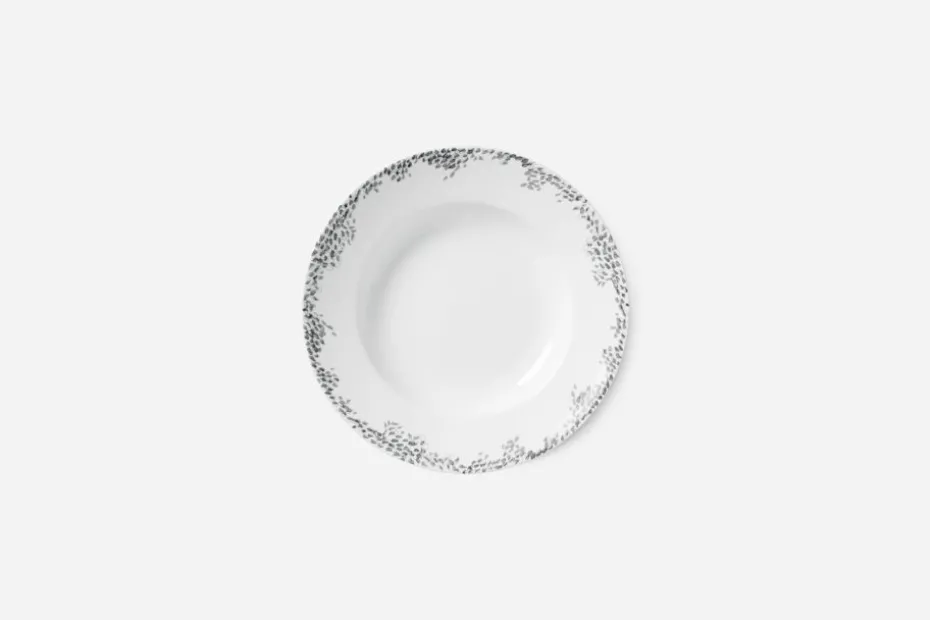 Sopptallriken Myrten är formgiven av Signe Persson-Melin som en komplettering till teservisen i tenn som hon formgav för Svenskt Tenn 2004. Det fina, sirliga myrtenmönstret smyckar flera produkter till det dukade bordet. Det är en gammal tradition att binda brudkronor av myrtens gröna blad, och växten är starkt förknippad med kärlek.