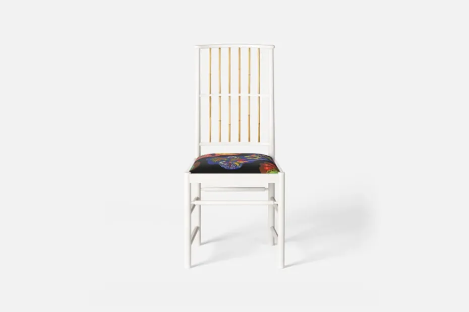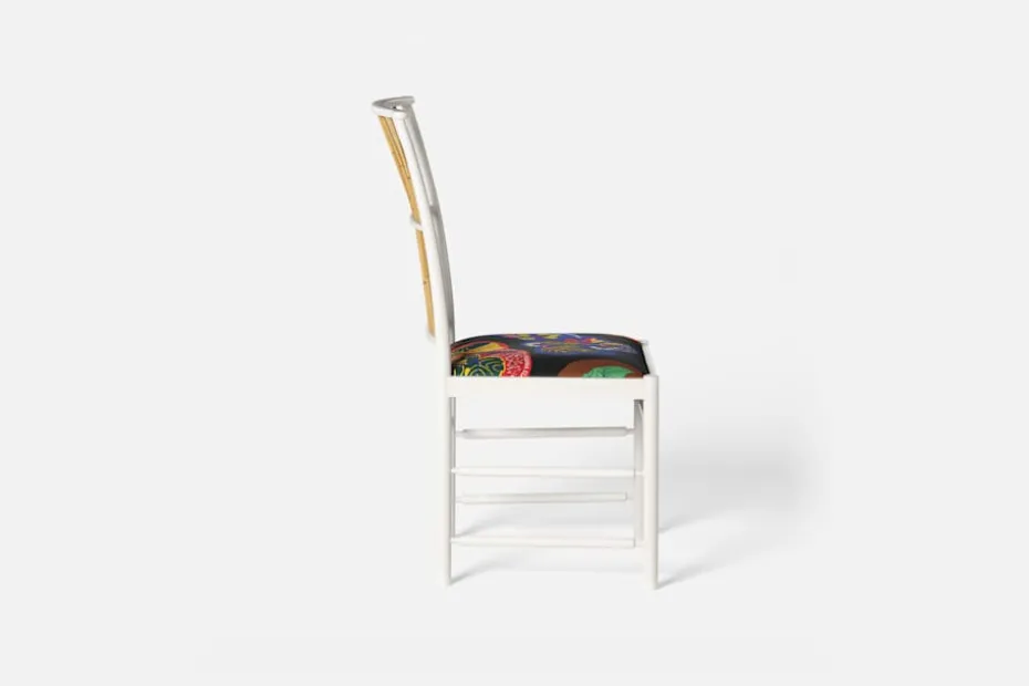 Josef Frank ansåg att en matsalsstol skall vara så lätt att den kan lyftas med ett finger och att användaren lätt bör kunna flytta stolen i rummet. Han formgav denna gracila stol år 1925 för sitt företag Haus und Garten i Wien. För att skapa spänning i formen valde Josef Frank ofta att blanda olika träslag och material, så även i denna klassiska stol.