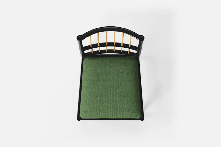 Josef Frank ansåg att en matsalsstol skall vara så lätt att den kan lyftas med ett finger och att användaren lätt bör kunna flytta stolen i rummet. Han formgav denna gracila stol år 1925 för sitt företag Haus und Garten i Wien. För att skapa spänning i formen valde Josef Frank ofta att blanda olika träslag och material, så även i denna klassiska stol.