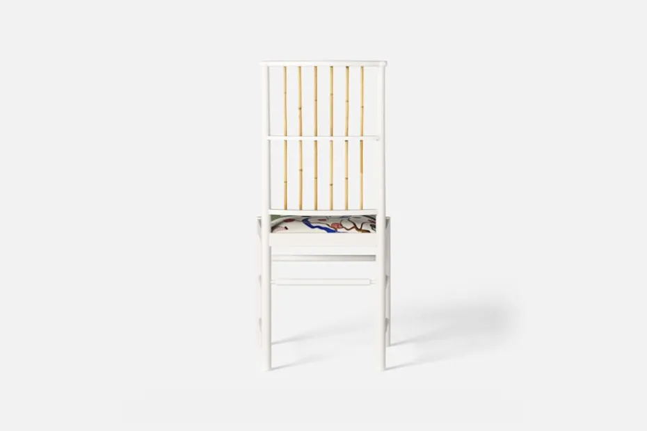 Josef Frank ansåg att en matsalsstol skall vara så lätt att den kan lyftas med ett finger och att användaren lätt bör kunna flytta stolen i rummet. Han formgav denna gracila stol år 1925 för sitt företag Haus und Garten i Wien. För att skapa spänning i formen valde Josef Frank ofta att blanda olika träslag och material, så även i denna klassiska stol.