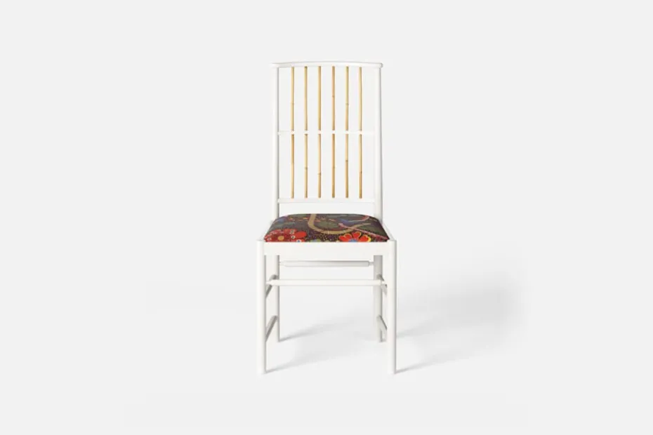 Josef Frank ansåg att en matsalsstol skall vara så lätt att den kan lyftas med ett finger och att användaren lätt bör kunna flytta stolen i rummet. Han formgav denna gracila stol år 1925 för sitt företag Haus und Garten i Wien. För att skapa spänning i formen valde Josef Frank ofta att blanda olika träslag och material, så även i denna klassiska stol.