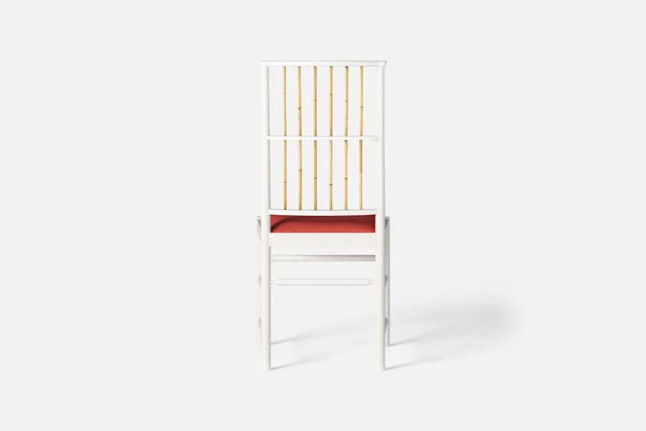 Josef Frank ansåg att en matsalsstol skall vara så lätt att den kan lyftas med ett finger och att användaren lätt bör kunna flytta stolen i rummet. Han formgav denna gracila stol år 1925 för sitt företag Haus und Garten i Wien. För att skapa spänning i formen valde Josef Frank ofta att blanda olika träslag och material, så även i denna klassiska stol.