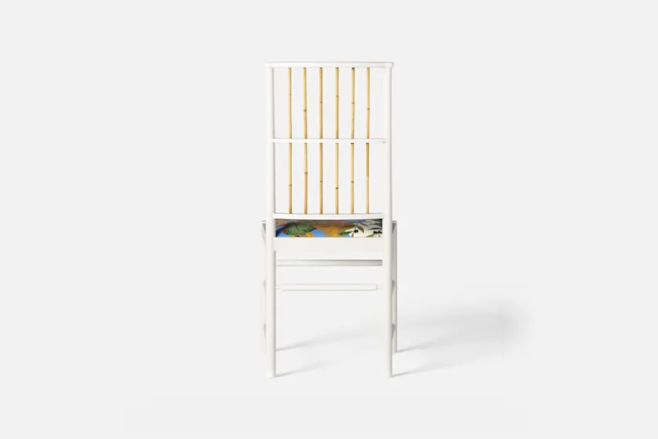 Josef Frank ansåg att en matsalsstol skall vara så lätt att den kan lyftas med ett finger och att användaren lätt bör kunna flytta stolen i rummet. Han formgav denna gracila stol år 1925 för sitt företag Haus und Garten i Wien. För att skapa spänning i formen valde Josef Frank ofta att blanda olika träslag och material, så även i denna klassiska stol.