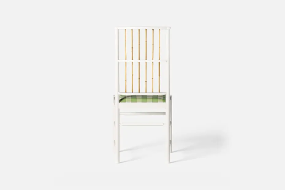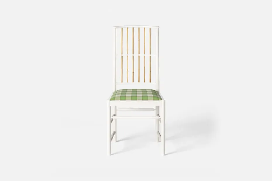 Josef Frank ansåg att en matsalsstol skall vara så lätt att den kan lyftas med ett finger och att användaren lätt bör kunna flytta stolen i rummet. Han formgav denna gracila stol år 1925 för sitt företag Haus und Garten i Wien. För att skapa spänning i formen valde Josef Frank ofta att blanda olika träslag och material, så även i denna klassiska stol.