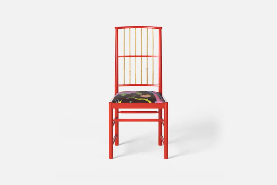 Josef Frank ansåg att en matsalsstol skall vara så lätt att den kan lyftas med ett finger och att användaren lätt bör kunna flytta stolen i rummet. Han formgav denna gracila stol år 1925 för sitt företag Haus und Garten i Wien. För att skapa spänning i formen valde Josef Frank ofta att blanda olika träslag och material, så även i denna klassiska stol.