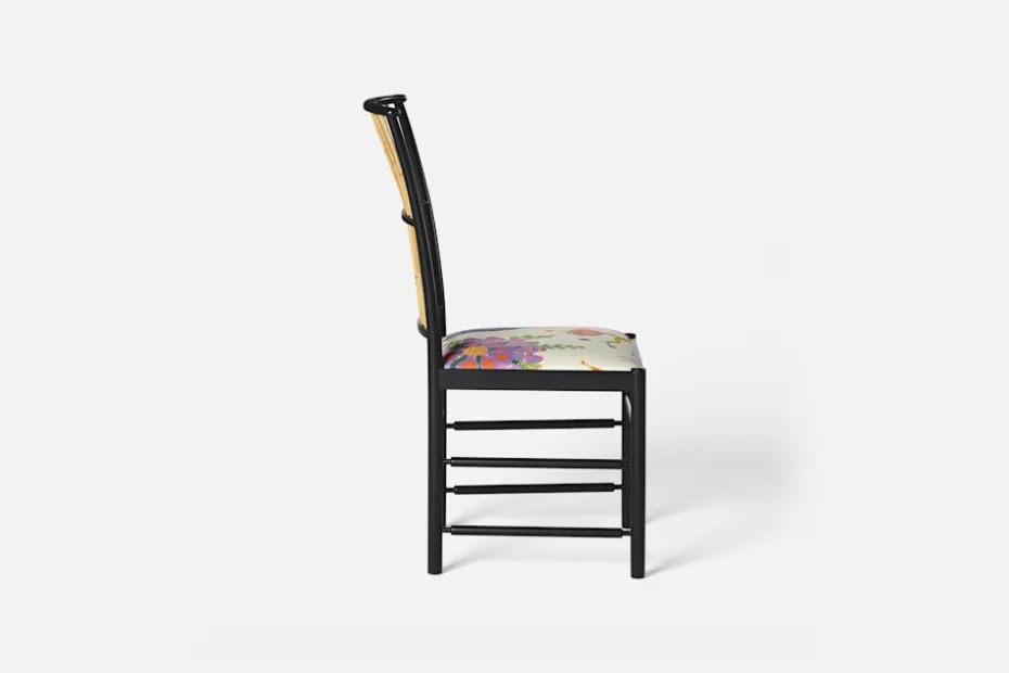 Josef Frank ansåg att en matsalsstol skall vara så lätt att den kan lyftas med ett finger och att användaren lätt bör kunna flytta stolen i rummet. Han formgav denna gracila stol år 1925 för sitt företag Haus und Garten i Wien. För att skapa spänning i formen valde Josef Frank ofta att blanda olika träslag och material, så även i denna klassiska stol.