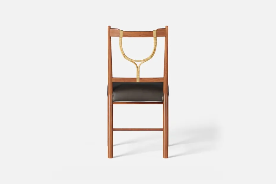 Underredet med sina fyra sidoslåar och två tvärslåar ger stolen stadga och leder blicken upp mot den generöst tilltagna rygglyran av dubbla rottingrör, som tillverkas för hand av Larsson Korgmakare i Stockholm. Som ett smycke pryder rottinglyran den lätta stolen, som troligen var den sista som Josef Frank ritade under sin livstid.