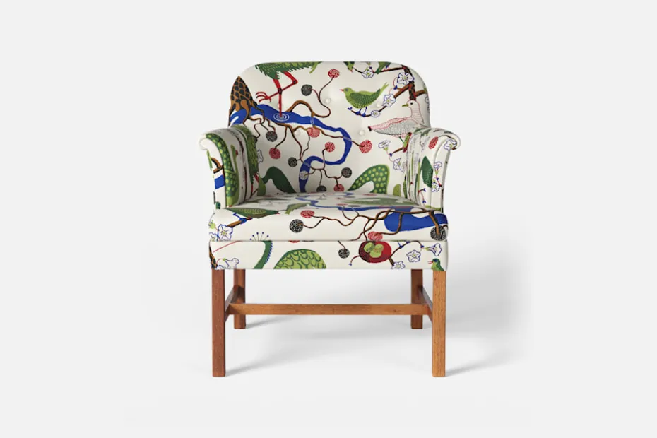 Josef Frank formgav Stol 930 på 1940-talet, med idén att skapa en möbel som skulle ackompanjera sminkbordet i sovrummet: som en mindre klubbfåtölj med hög benställning. Idag tillverkas den på O.H. Sjögrens möbelfabrik i Tranås, som tillverkat stoppmöbler för Svenskt Tenn sedan 1982.