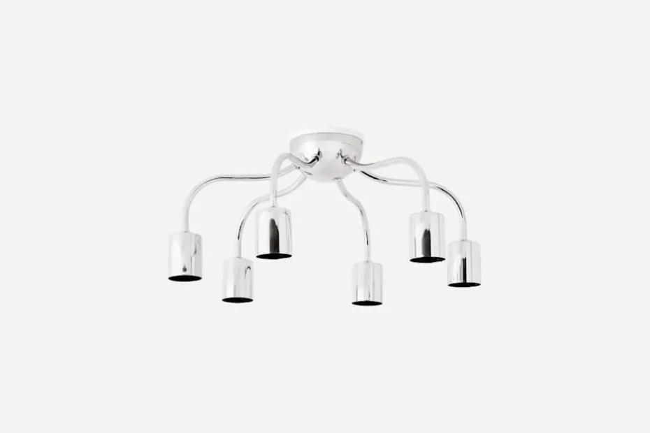 Svenskt Tenns lampor i förnicklad mässing torkas lätt med en fibertrasa eller putsar lätt med silverputs. Armaturen får inte komma i kontakt med vatten.