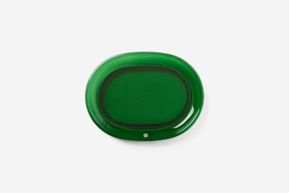 Svenskt Tenn började tillverka den ovala glastallriken på 1940-talet. Ursprungligen var den tänkt som skaldjurstallrik men kan med fördel även användas för frukt och kakor.