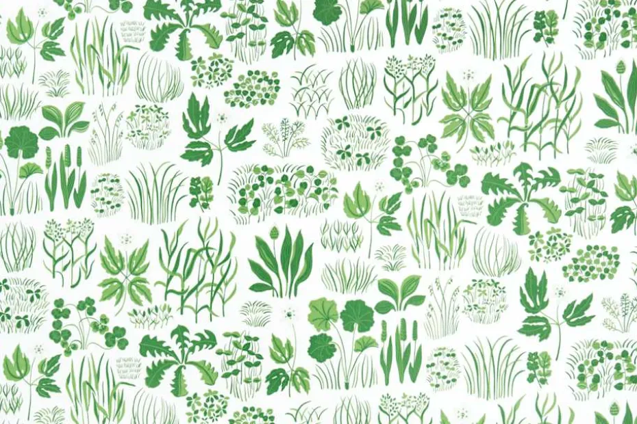 Efter att ha utrustat sig med fälthandböcker om örter, blommor, flora och fauna skapade Josef Frank makalösa mönsterkompositioner. Ett av dessa är mönstret på tapet Söndagsmorgon, där han tecknar en sagolik sammansättning av gröna blad, blommor och grässorter.