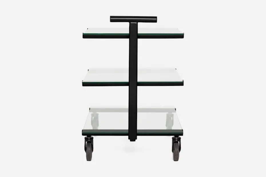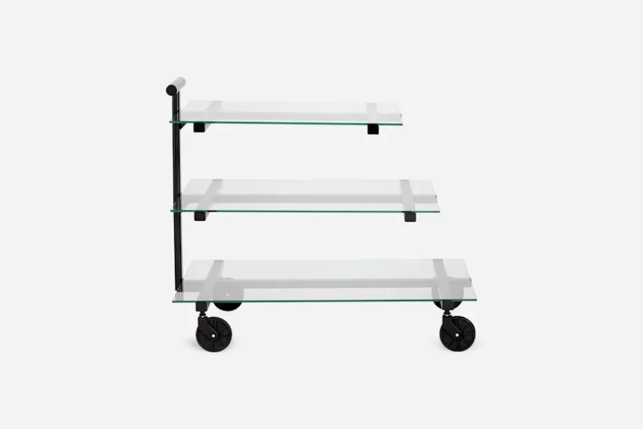 Denna stilsäkra tevagn formgavs ursprungligen av Josef Frank i svart och valnöt, under 1930-talets andra hälft. Den här versionen tillkom på 1980-talet då den lackades i olika kulörer och fick sina hyllplan utbytta mot glasskivor.