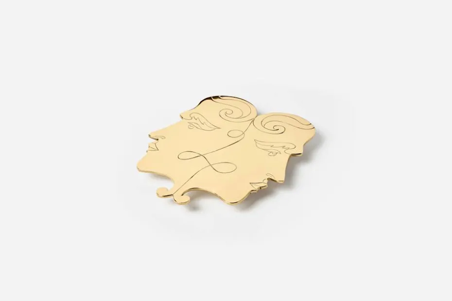 Underlägg i mässing formgivet av Luke Edward Hall för Svenskt Tenns julkollektion 2022. Dekorationerna är influerade av motiv från barocken och rokokon, och namngivna efter havsguden i den grekiska mytologin.