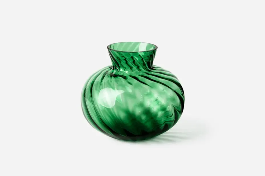 Vasen Pion har en generös, oval form och vinklad krage som skapar riktning och stöd till spröda stjälkar. De skiftande mönstren tillverkas enligt månghundraåriga tekniker och förmedlar såväl lekfullhet som elegans. Pion är både ett konstobjekt och en vas. Den signalerar svensk formtradition och gediget hantverk samtidigt som den bjuder på Ann Wåhlströms säkra estetik.
