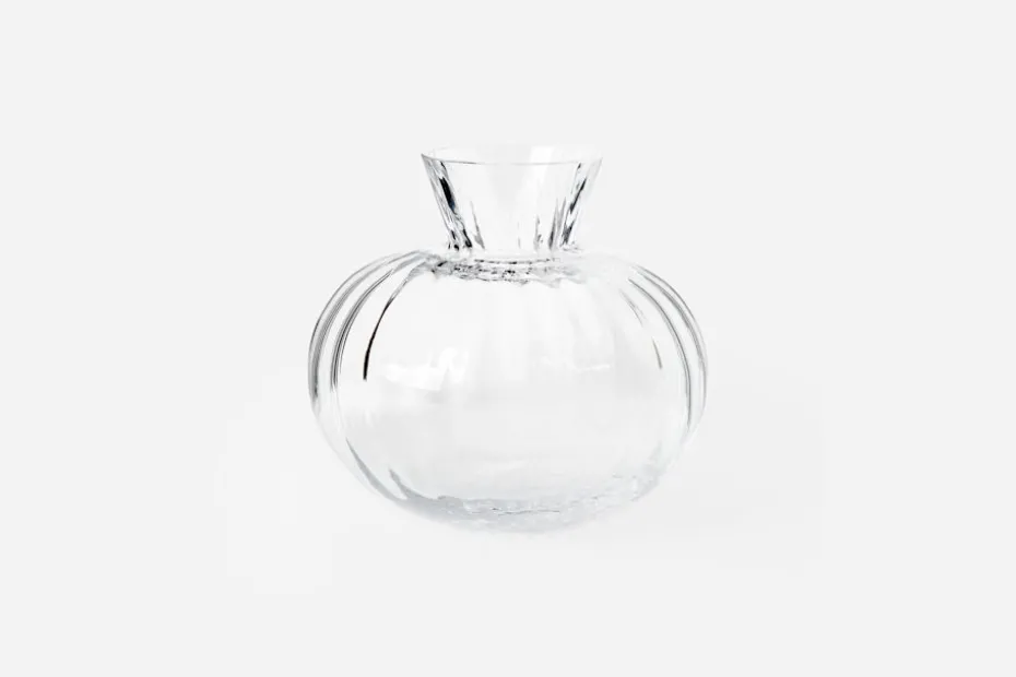 Handblåst vas i optikblåst glas.