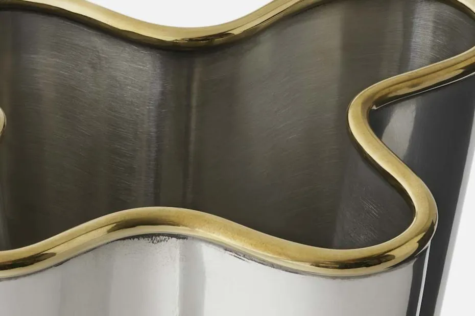 Vasen Wave formgavs 1933 av Björn Trägårdh för Svenskt Tenn. Samma år formgav han flera tennföremål som alla går i samma stil, tenn som krönts med en mässingskant.